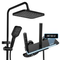 HOMELODY Duschsystem mit Thermostat und Ablage Duschsäule mit Regendusche und Duscharmatur, 3 Strahlart(en), Set, Funktional und hochwertig – für ein rundum perfektes Duscherlebnis., mit Brausegarnitur und Kopfbrause, 30cm Kopfbraus,Schwarz
