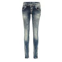 Cipo & Baxx Bikerjeans Damen slim fit Hose Stonewashed BA-WD361 Besondere Strassknöpfe