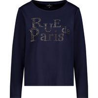 Monari Sweatshirt Sweatshirt Schmuckdetail Stehkragen mit Bindeband, Logo aus Strasssteinen