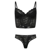 Elegant Love Set: Bügel-BH Sexy Dessous Set für Damen, bestickter BH & Tüll-Tanga (Set, 2-tlg., mit Panty) elegantes Lingerie mit String, Unterwäsche, Blumenmuster BH-Set