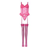 Orchibelle Set: Corsage Dessous-Set aus Spitze – Corsage, String & Гольфы für Damen (Set, 3-tlg., BH, Tanga, Netzstümpfe) Stilvolle Lingerie für Damen – Reizwäsche