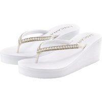 LASCANA Sandale, Pantolette Badezehentrenner Badeschuh, Шлепанцы mit Keilabsatz und Perlen VEGAN