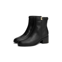 Tommy Hilfiger STACKED HEEL LEATHER LONG BOOT Сапоги, Blockabsatz, Langschaftstiefel mit goldfarbenem Logo-Schmuckelement