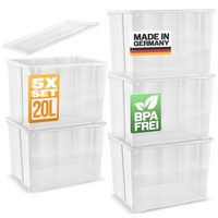 Gardissimo Aufbewahrungsbox 5 er Set mit Deckel 20 Liter Kunststoff Одежда и товары для бокса Штабелируемые коробки Plastik (Spar-Set, 5 Одежда и товары для бокса + Deckel), stapelbar