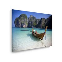 WallSpirit Leinwandbild "Strand mit Boot" - XXL Wandbild, Leinwand geeignet für alle Wohnbereiche