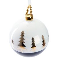 BRUBAKER Weihnachtsbaumkugel Premium Weihnachtskugel Tannenbaum Gold - 10 cm Baumkugel aus Glas (1 St), Weiß Schwarz mit goldener Weihnachtsbaum Figur - Handbemalt
