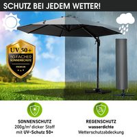 tectake Ampelschirm Sonnenschirm, geeignetes Set für Terrasse oder Garten, Parasol inkl. Schutzhülle und Solarpanel, 250 x 250 cm mit LED Solar-Beleuchtung