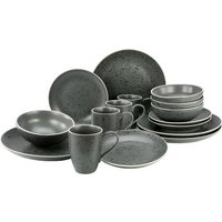CreaTable Kombiservice Uno (16-tlg), 4 Personen, Steinzeug, seidenmatte Oberfläche, jedes Stück ein Unikat
