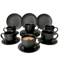 Seltmann Weiden Кофейный сервиз Geschirr-Set, Service Lido Black Line (18-tlg), 6 Personen, Porzellan, Tassen, Untertassen, Teller, 18 Teile, für 6 Personen, Made in Germany