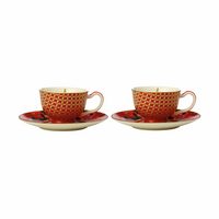 Maxwell & Williams Espressotasse TC Silk Road mit Untere 2er Set Rot 85ml, Porzellan