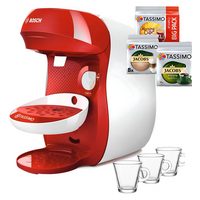 Bosch Professional Kapsel-/Kaffeepadmaschine Tassimo Happy Essential One, Kompakte Kapselmaschine inkl. 53 Kapseln & 3 Gläser