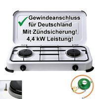 ZMC Gaskocher Doppel Campingkocher Gaskocher 2 Flammig + Gaskartuschen 227g, (mit automatische Piezo-Zündung Wärmeleistung: 2,3KW, inkl. Adapter für LPG Anschluss), Outdoor Kartuschenkocher 2Fach Gasherd Ofen Butan Kochfeld Gas Мультиварки