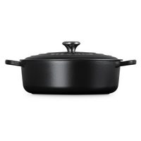 LE CREUSET Кастрюли жаровни Gourmet-Bräter Signature rund schwarz matt 30cm, Emailliertes Gusseisen