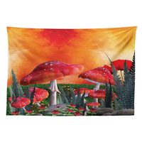 Abakuhaus Wandteppich aus Weiches Mikrofaser Stoff Für das Wohn und Schlafzimmer, rechteckig, Pilz Wolken Blätter Mohnblumen