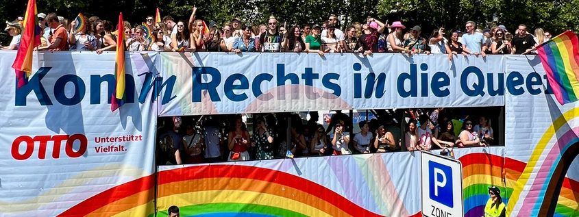 „Einen Schritt vor! Keinen zurück!“ – Unter diesem Motto nimmt OTTO am 2. August 2025 am Hamburg Pride teil. Organisiert von unserem queeren Mitarbeitenden-Netzwerk MORE*, fährt OTTO mit einem eigenen Truck auf der CSD-Demonstration mit. Und setzt so vor hunderttausenden Menschen ein klares Zeichen für Vielfalt und Menschenrechte.