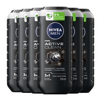 Nivea Men Duschgel Active Clean 6 x 250ml, 6-tlg., Mit Aktivkohle natürlichen Ursprungs