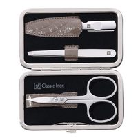 Zwilling Maniküre-Etui CLASSIC INOX DRUCKKNOPF-ETUI SCHWARZ, 5 tlg., 5-teilig, aus rostfreiem Edelstahl, Etui aus Rindleder.