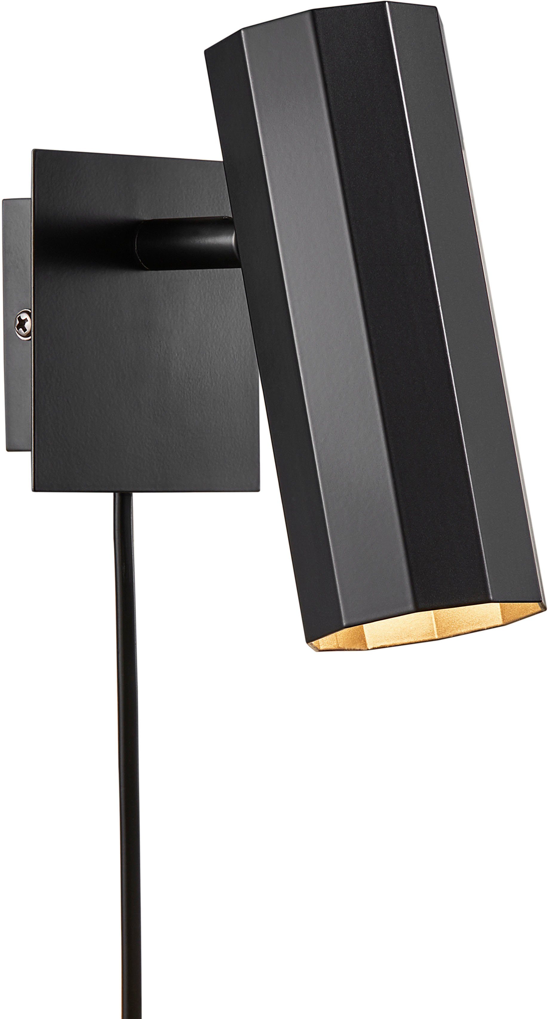 hofstein Wandleuchte Wandlampe aus Metall/Bast in Schwarz/Natur, ohne Leuchtmittel, Wandleuchte m. Stecker/Schalter, Kabel, UP & Down Lichteffekt, 1 x E27