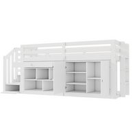Flieks Etagenbett, Kinderbett Hydraulisches Unterbett 90x200cm mit Regal & Stauraumtreppe