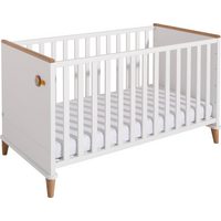 PAIDI Babybett YOLANDA in Weiß mit Eiche-Dekor, umbaubares Kinderbett, inkl. Lattenrost, Gitterbett höhenverstellbar, entnehmbare Sprossen
