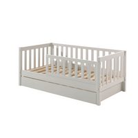 Kids Collective Babybett Kinderbett Gitterbett 60x120 cm Set mit Matratze & Schublade, höhenverstellbarer Lattenrost & abnehmbare Sprossen, weiß, Vollholz