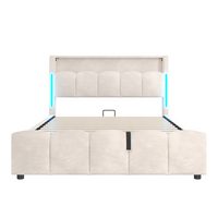 Merax Polsterbett (1-tlg), Hydraulisches Stauraumbett 140x200cm mit LED USB Typ-C Ablagefächern