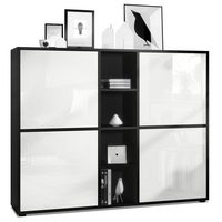 Vladon Sideboard Valencia (Sideboard, mit 3 Türen und 1 offenem Fach), Schwarz matt/Sandgrau Hochglanz/Sandgrau Hochglanz (155 x 92 x 40 cm)