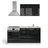 Vicco Кухниzeile R-Line, Schwarz Hochglanz/Weiß, 160 cm mit Herdumbauschrank ohne A...