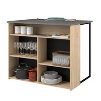 Parisot Kochinsel Fumay 12, in Eiche Dekor / Beton Optik, schwarz lackiert Alu