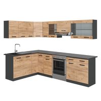 Vicco Winkelküche Rick, Anthrazit/Goldkraft Eiche, 267 x 167 cm, AP Schwarz