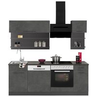 KOCHSTATION Кухниzeile KS-Tulsa, mit E-Geräten, Breite 210 cm, schwarze Metallgriffe, MDF Fronten