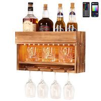 Yorbay Weinregal aus Holz mit LED-Beleuchtung, 3 Etagen Wandmontage Wand Flaschenhalter, Vintage, 20 Farben & 60 Lichteffekte