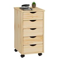 IDIMEX Rollcontainer LAGOS, Bürocontainer aus Massivholz mit 5 Schubladen Natur