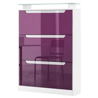 Vladon Schuhschrank Elvas (Schuhkipper, für 16 Paar Schuhe mit 2 Klappen und Schublade) Weiß matt / Brombeer Hochglanz, (89 x 95,5 x 27 cm)