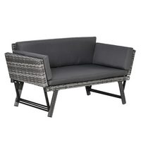 Outsunny Gartensofa 2 Sitzer Loungesofa, Gartenbank, Gartenliege, klappbar Armlehnen, Gartenmöbel 1 Teile, für Garten, Balkon, Grau