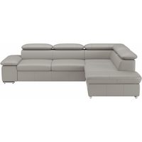 luma-home Big-Sofa 15113, XXL-Couch B306/T134/H86 cm, Liegefläche 120x240 cm, mit Federkernpolsterung, viele Kissen, markante Steppungen, Kunstleder Weiß/Web-Strukturstoff Grau Beige