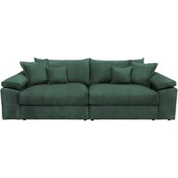 luma-home Big-Sofa 15172, XXL-Couch B306/T134/H86 cm, Liegefläche 120x240 cm mit Federkernpolsterung, viele Kissen, markante Steppungen, Cordstoff Grün