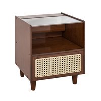 COSTWAY Nachttisch (1-St), mit Schublade und Glastischplatte, aus Bambus & Rattan