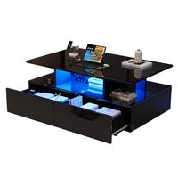 Merax Couchtisch hochglanz Sofatisch Beistelltisch mit LED-Beleuchtung (90x55x41 cm), Wohnzimmertisch mit 2 Schubladen und Stauraum inkl. Fernbedienun