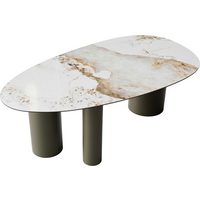 DELIFE Couchtisch Casilda, Keramik Minas Melange Weiß-Beige 150x90 cm Mittelfuß Effektfinish Tita