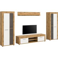 Vladon Wohnwand Movie, (Anbauwand, bestehend aus 1 TV-Board, 2 Vitrinen und 1 Regal), Weiß matt/Weiß matt/Weiß Hochglanz (Gesamt: 300 x 190 x 39 cm)