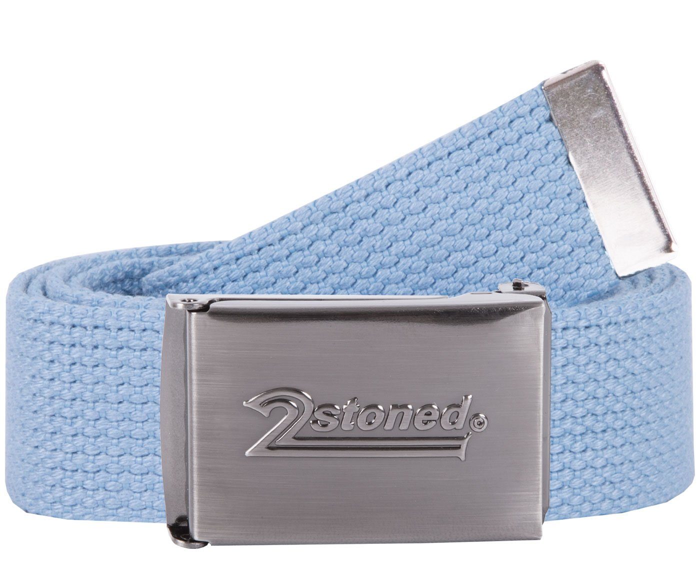 Der robuste Metallabschluss mit 2Stoned Logo am Ende dieses Koppelgürtels verhindert das Ausfransen des Stoffes.
