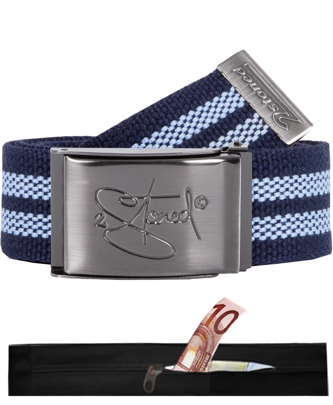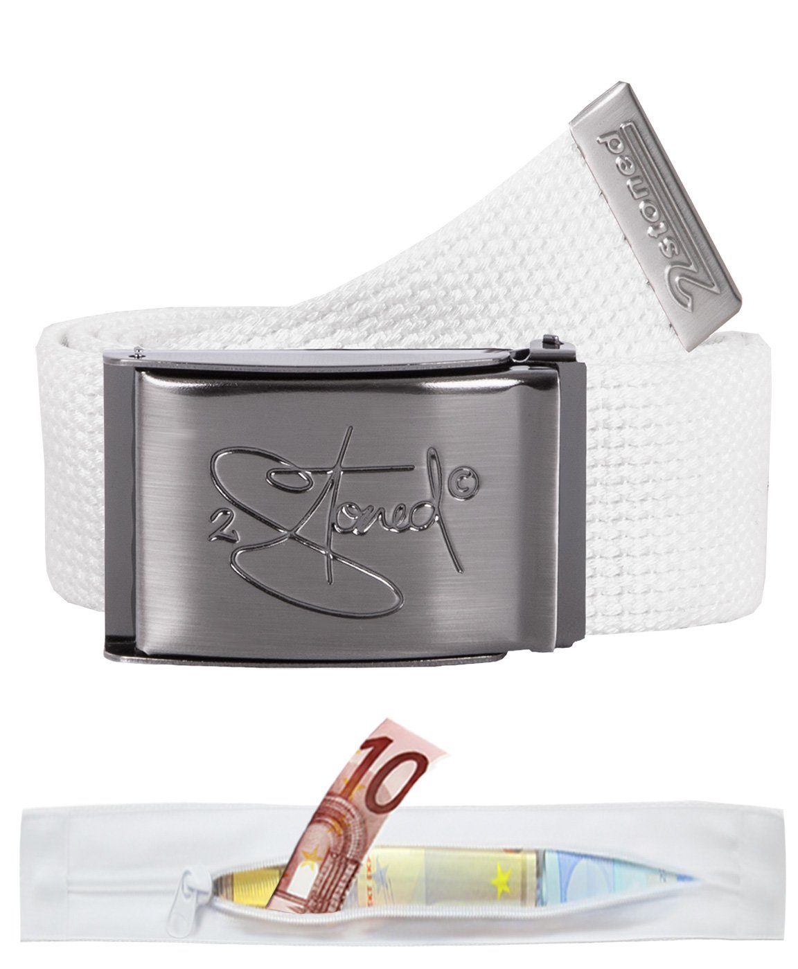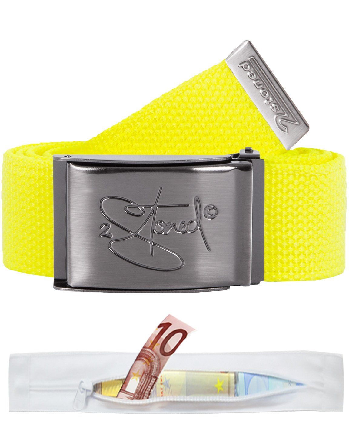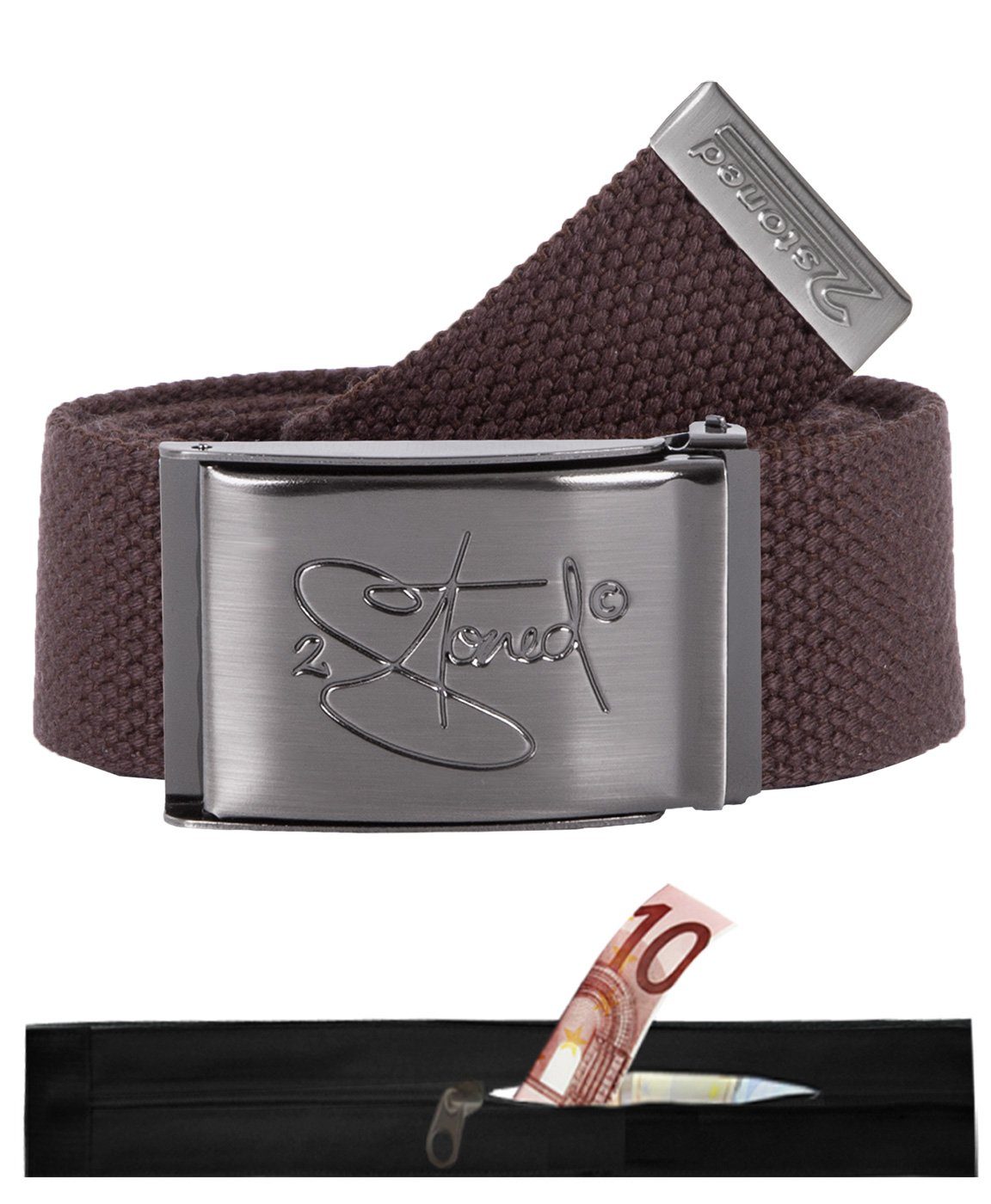 Original 2Stoned Tresorgürtel Canvas Secret Belt Einfarbig oder Mehrfarbig in 13 Farben/Farbkombinationen für Damen und Herren ca. 120 cm lang und ca. 4 cm breit mit matt gebürsteter Schnallen mit Klappverschluss und gestanztem 2Stoned Classic Logo. Dieser Stoffgürtel mit Geheimfach und Reißverschluss auf der Gürtelinnenseite kann um ca. 15 cm verstellt werden. - Original 2Stoned Tresorgürtel Canvas Secret Belt - Reisegürtel Safe Belt mit Geldfach / Geheimfach mit Reißverschluss für Bargeld auf der Innenseite - um 15 cm verstellbarer Koppelgürtel - Geldgürtel Money Belt für Damen, Herren und Kinder - matt gebürstete Metallschnalle mit Klappverschluss - Schnalle: 2Stoned Schriftzug "Classic Logo" in Gürtelschnalle gestanzt - Gürtelendstück aus Metall mit 2Stoned Logo - Breite: ca. 4 cm - Длина: ca. 120 cm - Größe: One Size - Material: Polyester im Cotton Look - 13 Farben und Farbkombinationen - Muster: Einfarbig oder Mehrfarbig gestreift - Hauptfarben: Schwarz, Weiß, Blau, Grau, Braun, Grün, Gelb, Rosa, Beige - Herrengeldgürtel und Damengeldgürtel für Jeanshosen - Hersteller: 2-stoned Wear (Streetwear und Accessoires) - Koppelgürtel mit Geldfach für Männer, Frauen, Jungen und Mädchen