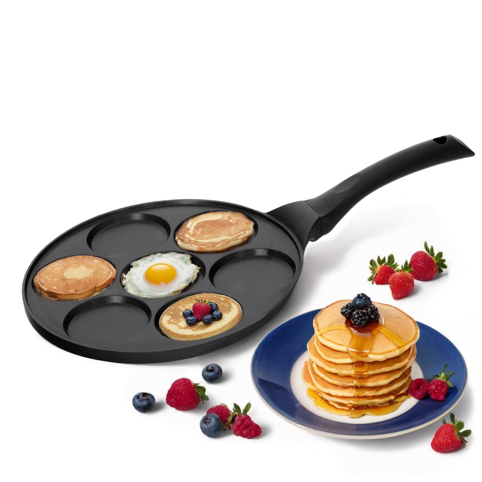 Die 7 perfekt geformte Pfannkuchen werden gleichzeitig zubereitet Mit dieser Pfannkuchen-Pfanne machen Sie köstlichsten Pfannkuchen, Spiegeleier und vieles mehr.Extra starker, dicker Boden sehr hohe Kratzer-Resistenz und Lebensdauer einfache und schnelle Reinigung Ideale Pfanne zum Braten von Spiegeleiern und kleinen Pfannkuchen.