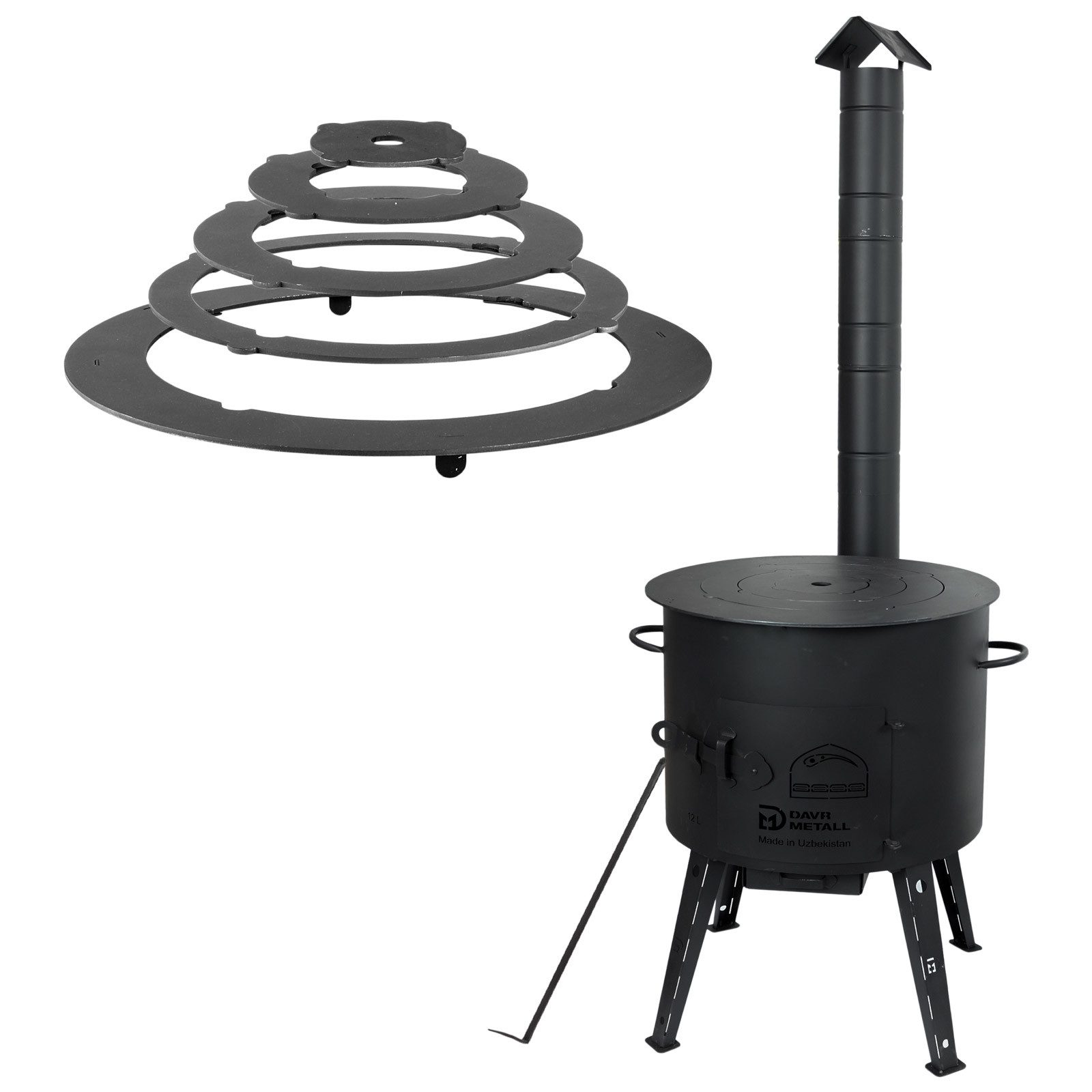 Mit diesem umfassenden Set sind Sie bestens ausgestattet für traditionelle und vielseitige Kochabenteuer im Freien. Das Abzugsrohr des Utschaks sorgt für eine sichere und angenehme Kochumgebung, während die robusten Adapter-Ringe eine stabile Unterstützung bieten. Vertrauen Sie auf die Qualität und Langlebigkeit der Materialien für unvergessliche Kocherlebnisse.