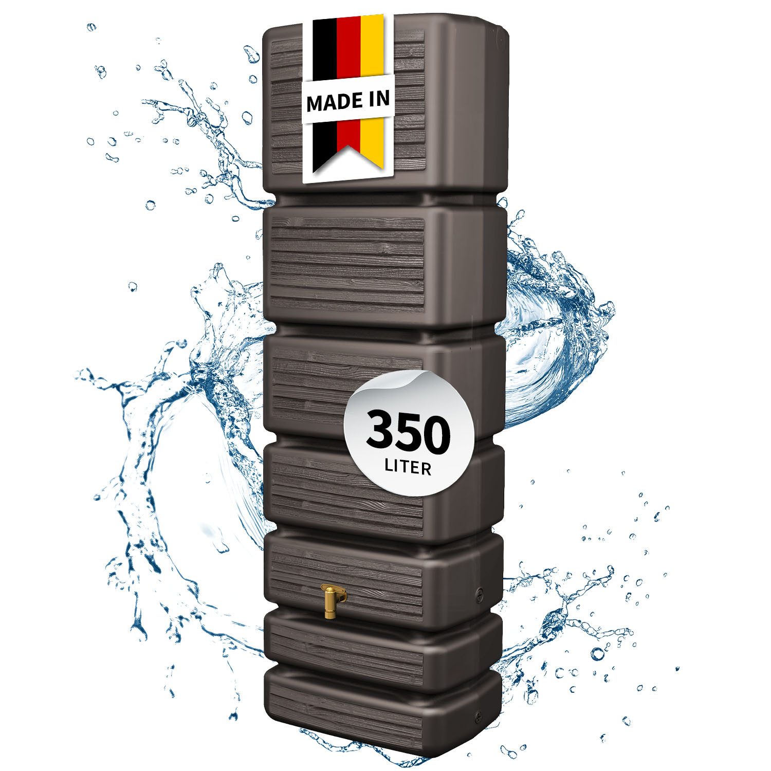 4rain Slim Wood Decor Wandtank darkwood - die neue Generation. Der stilvolle Regenwasserbehälter überzeugt mit seiner trendigen Holzdekor-Front und der naturgetreuen Farbgebung in dunkelbraun. Entscheidungen zwischen Eleganz und Funktionalität gehören dank dieser Regentonne der Vergangenheit an. Entdecken Sie den Charakter natürlicher Holzoptikelemente, gepaart mit der Raffinesse einer klaren Linienführung. Der schlanke Tank zur Aufstellung an der Hauswand, bietet Ihnen ein Speichervolumen von 350 Litern bei geringem Platzbedarf. Entscheiden Sie sich für eine Эко-товарe Gartenbewässerung, schonen Sie wertvolle Ressourcen und vor allem Ihren Geldbeutel. Sammeln Sie ab sofort Regenwasser, das ohnehin kostenlos vom Himmel fällt. Der Behälter verfügt über insgesamt fünf Gewindeanschlüsse 19 mm (3/4") zur Wasserentnahme (Front und Seiten), z. B. für die Montage des mitgelieferten Kunststoff-Auslaufhahns in Messingoptik, eines Schlauchsets (optionales Zubehör) oder zur Restentleerung vor der Frostperiode. Aufgrund der zahlreichen Auslaufgewinde kann man ihn auch seitlich in besonders schmalen Nischen unterbringen. Zusätzlich befindet sich auf der Oberseite der Regentonne eine Deckelöffnung mit einem Durchmesser von 18 Zentimetern. Besonders robust und langlebig - witterungsbeständige Materialien mit hohem UV-Schutz sorgen für eine lange Lebensdauer beim Einsatz im Freien. Bereits bei der Entwicklung eines 4rain Produkts wird sehr viel Wert auf ein nachhaltiges Produktdesign gelegt. Dieser Regenwasserbehälter wird aus Recyclingkunststoff hergestellt und ist zu 100 % recycelbar. Qualität "Made in Germany". Hinweis: Behälter muss bei Frostgefahr im Winter vollständig entleert werden.