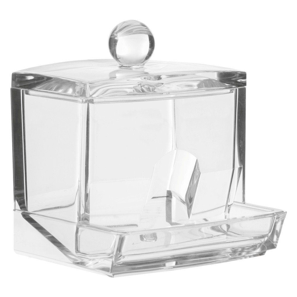 Eine gute Lösung für dieses Problem kann ein transparenter Behälter aus Polystyrol mit hoher Widerstandsfähigkeit gegen Beschädigungen sein. Der Artikel hat auch ein Regal, aus dem Sie Wattebäusche oder Wattepads ziehen können. Der Container kann überall im Bad oder auf der Toilette platziert werden, da er nicht viel Platz beansprucht. Ein weiterer Vorteil des Produkts ist seine Funktionalität. </" Schätzchen