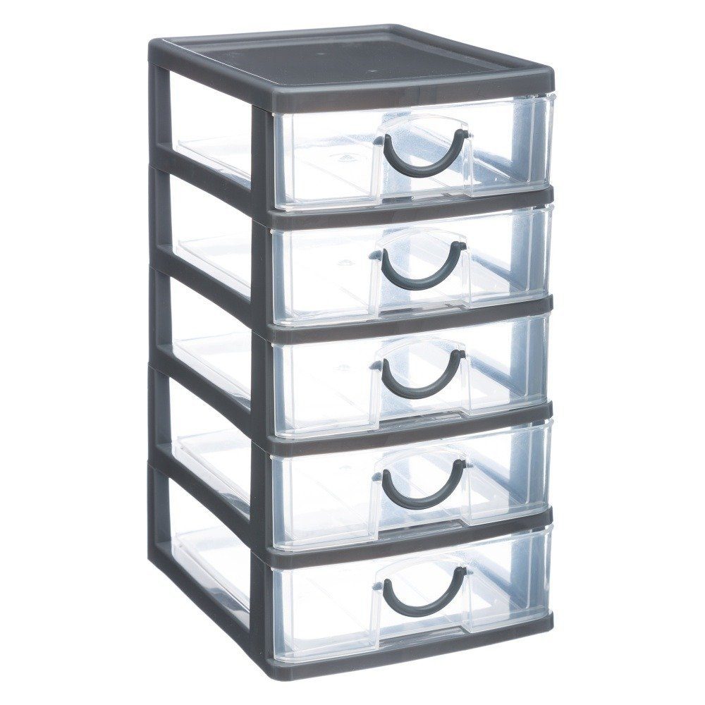 Ein Kleiniges Organizer mit 5 Schubladen, 13 x 16 x 26 cm, Grau ist das perfekte Gadget für diejenigen, die gerne eine strukturierte Ebene um sie herum haben. Dank der Anzahl der Fächer können alle Inhalte leicht getrennt werden, um den Zugang zu den Dingen einfacher und transparenter zu machen.