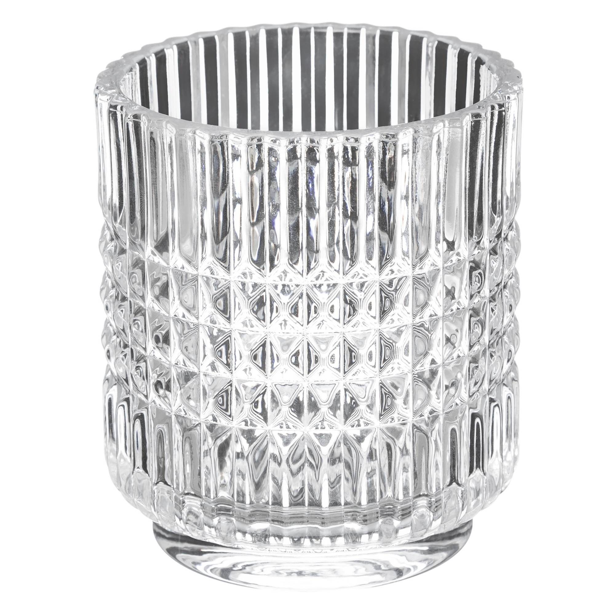 Transparentes Glas in Kombination mit dem ursprünglichen Design eignet sich perfekt für Badezimmer, die in klassischen oder modernen Stilen angeordnet sind. Sie können es auch in der Küche benutzen oder auf einen Schminktisch im Schlafzimmer stellen. Der Durchmesser des Bechers beträgt 8,4 Zentimeter und seine Höhe beträgt 9,8 Zentimeter.
