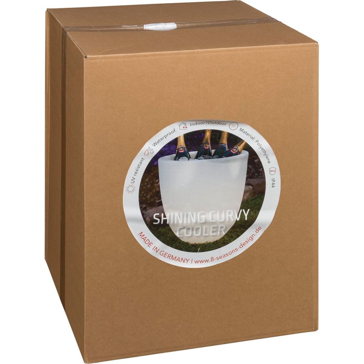 Ob im Innen- oder Außenbereich, diesee beleuchtete Sektkühler ist ein Must-Have für jeden Sommerabend. Die circa 11 Liter Volumen bieten Platz für Getränke. Mit der passenden Beleuchtung wird der Shining Curvy Cooler alle Blicke auf sich ziehen.